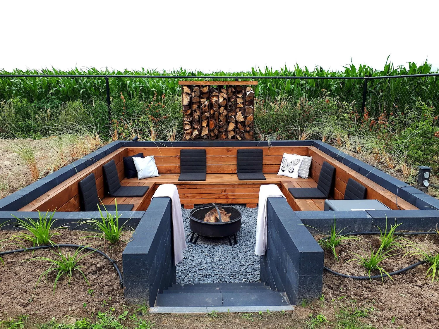 Muurblokken in antraciet zijn nog steeds een trend in de tuin. Deze diepe, grijs-zwarte kleur geeft een moderne en luxe uitstraling. Antraciete blokken zijn heel mooi met hout, groene beplanting en lichte tegels. Ook passen ze mooi bij kunstgras of grind in een lichte kleur, voor speels contrast.